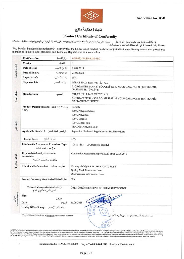 Oeko-Tex (Milat Carpet)